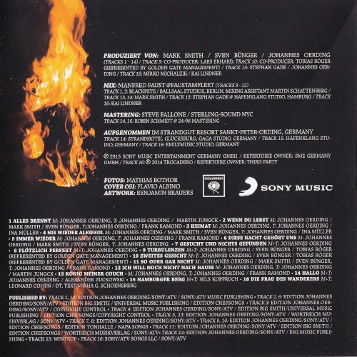 Liebe, Lust, Verlust und das Leben im Allgemeinen sind Themen, die in den Texten behandelt werden. Das von Oerdings langjährigem Mitarbeiter Mark Smith produzierte Album erhielt positive Kritiken für seine eindringlichen Songs und herzlichen, emotionalen Texte. „Alles brennt“ verhalf Oerding zu einem der beliebtesten deutschsprachigen Popmusiker und erreichte Platz vier der deutschen Album-Charts.